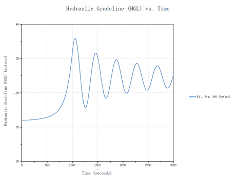效果不明显,继续延长关阀时间到1000s,调整分析时长为3000s,水面线也就降到38m。