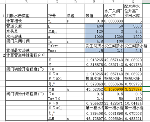 即1000s直线关阀,管道高程20m,静水位32.24m,压力12.24m,水锤水位38m,压力升高6m,接近50%。