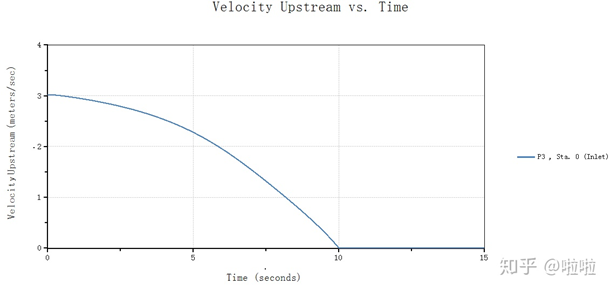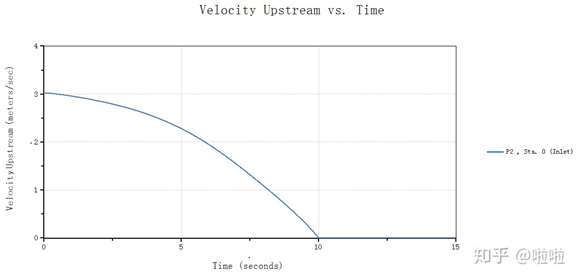 可以看到关阀结束时刻,管路流速降为零,水泵后由于阀门关闭而产生巨大的水头,阀门后则产生关阀水锤的压力脉动。