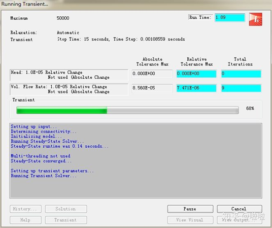 运行结束后,右下角的View Output按钮,可以看到表格式输出文件,这些数据为水力过渡过程初始时刻的状态参数。