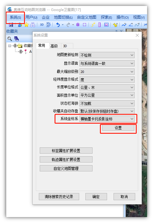 (1)系统(S) →系统设置,系统坐标系“横轴墨卡托投影坐标”
