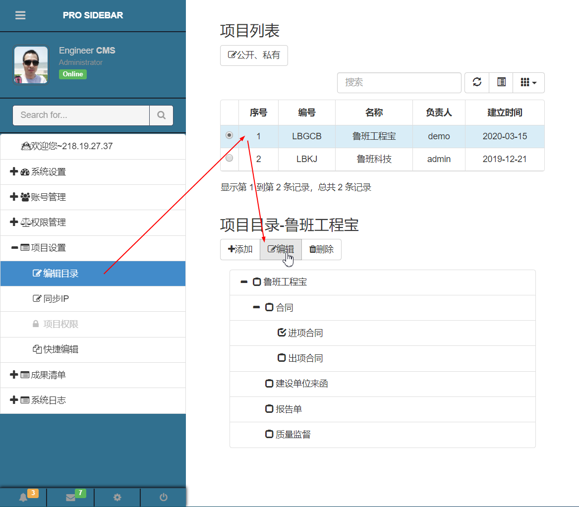 管理员登录——进入后台——系统设置——分级目录,先添加一个类别,比如设计单位的目录分级,施工单位的目录分级,招标代理的资料分级类别,然后在这个类别里添加多级目录。对于一个项目,项目名称是1级目录,所以,这里添加的都是2级、3级、4级、5级……目录。当你建立项目时,系统会根据这个目录分级进行组合。