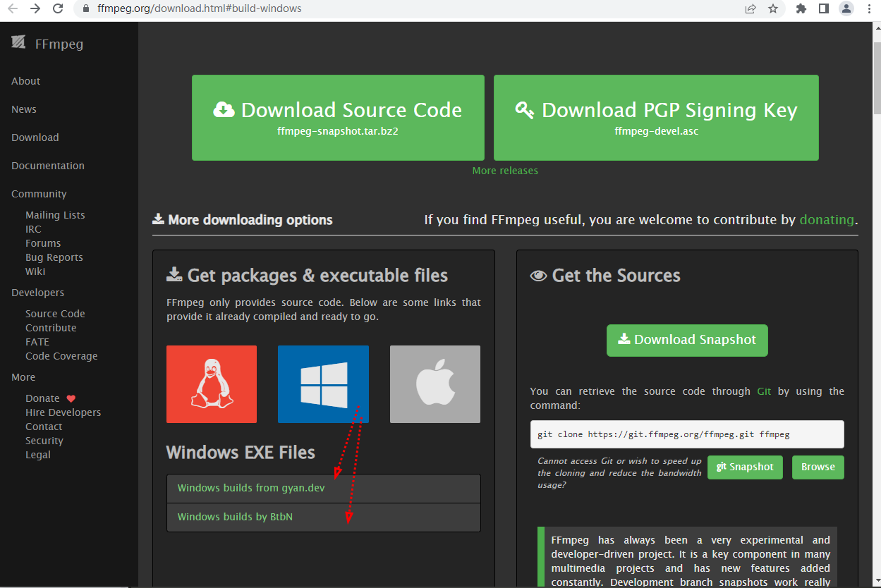首先打开 ffmpeg官网下载