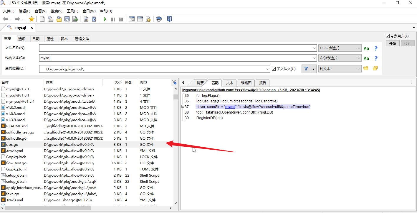 折腾很久,才使用filelocator全文检索mysql,在所有golang的引入包里查询。