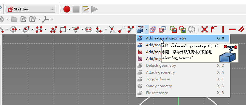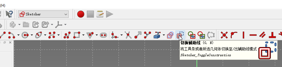 - 采用构造元素。添加几何元素总比添加约束容易。只作构造用的几何元素在添加时,就可以借助 Construction Mode 工具改变其存在状态。构造元素并不包含在最终的实体中。————这个讲利用辅助线的意思,利用辅助线达到减少约束的目的。