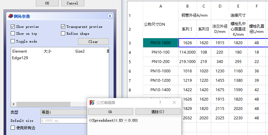在参数化过程中,输入的参数链接,所支持的公式(表达式)有加减乘除指数,三角函数,对数,指数,幂,绝对值,取整,最大最小值min、max,甚至条件表达式等