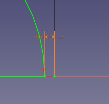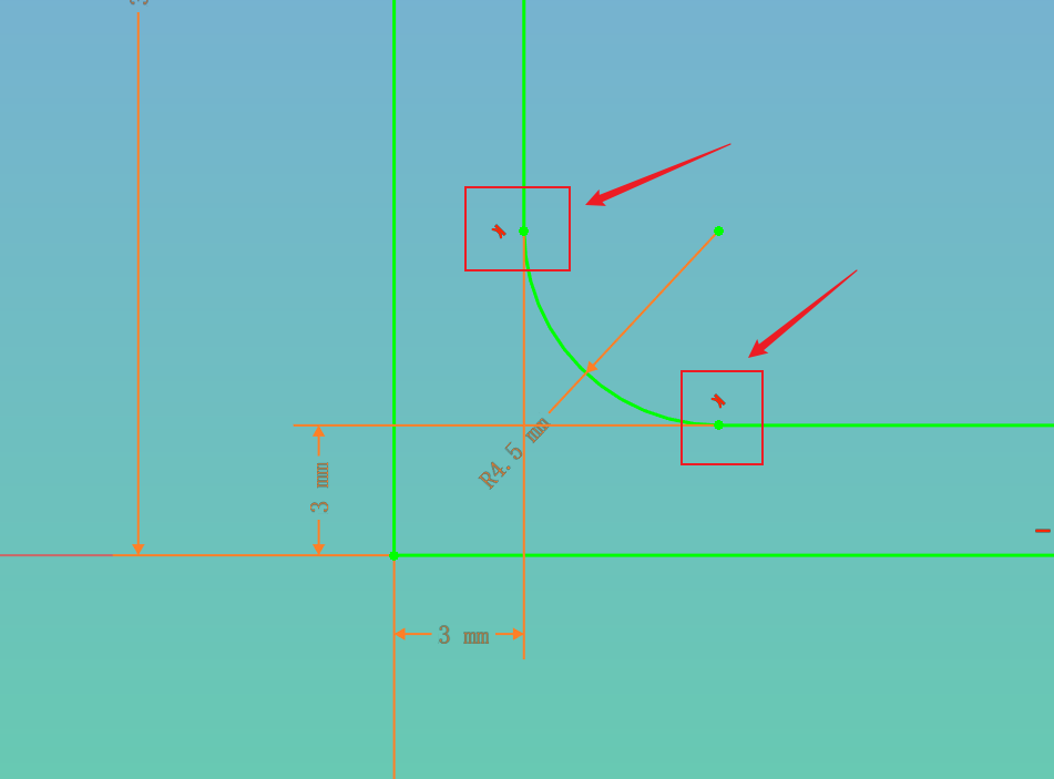 下图就是错误的约束方式:选择线段再选择原点,进行尺寸标注,容易出现圆弧反转等问题