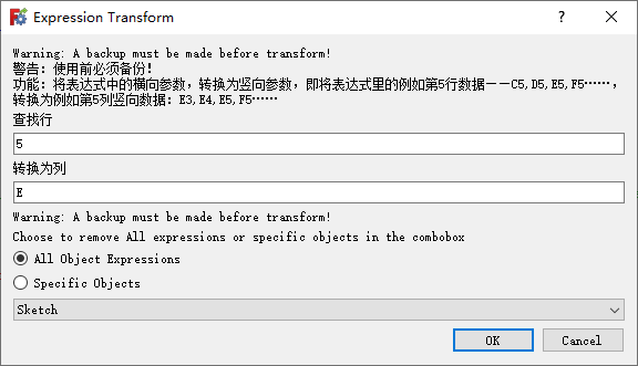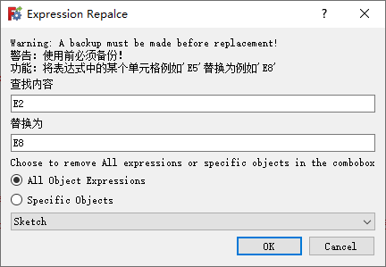 对于没有采用<<Spreadsheet>>.B5……这种label形式,而是采用Spreadsheet.B5……这种形式的,我们写了个宏ReplaceSpreadsheetLabel.FCMacro,可以一次性将所有参数链接中的Spreadsheet……加上尖括号。