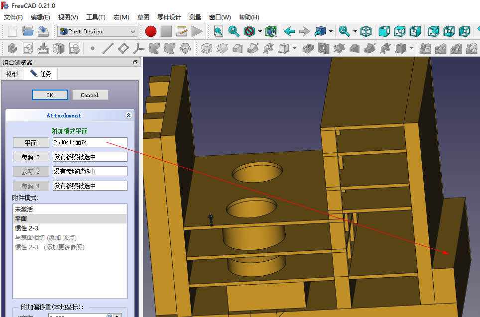 重要:假如附加面(依赖面)选择好了,还是出错,那进入草图,草图中有参考线(参考关联的边……),这个参考线也要删掉重新设置参考线。