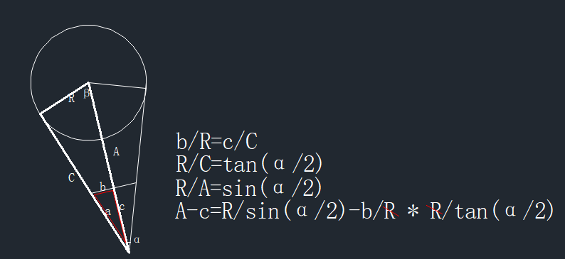 那只能靠几何公式来算出这根线段所在位置的距离定位。距离计算见下图公式。疑问,如果距离不靠谱,那这个距离是否同样会跑到上面去?