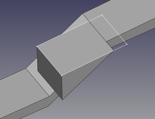 类似下方这个,矩形拉伸到斜面,因为矩形和斜面相交,拉伸长度最小为0,可能会导致错误,但是也成功了。因此这个有可能导致后面的计算出问题,待继续验证。