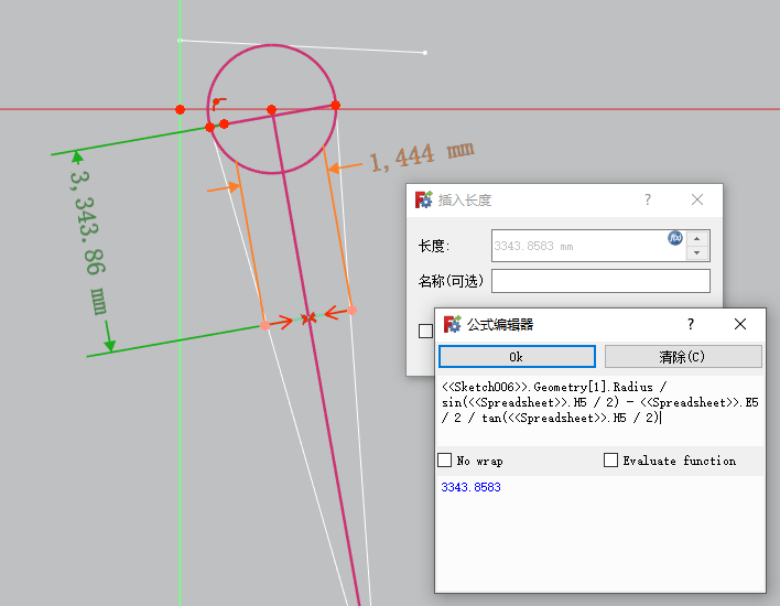 装配体的参数减少就没那么容易了,例如隧洞开挖断面的尺寸,在钢拱架里用一次,到内衬砼里又要用一次,如何避免?答案是,到装配体里,通过partdesign里的subshapebinder将装配进来的单体某个面引入到新建的body中来,能直接获取就直接获取,不能直接获取则将它作为参考,新绘制约束草图,从而获取草图特征。<<Sketch004>>.Geometry[0].LastParameter-<<Sketch004>>.Geometry[0].FirstParameter