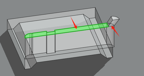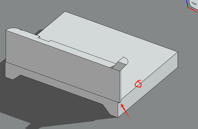 注意:其他某种情况也是因为尺寸为0造成的,需要加一个很小的数。例如完全倒角、下图长凹槽长度正好与弧形边挨着。