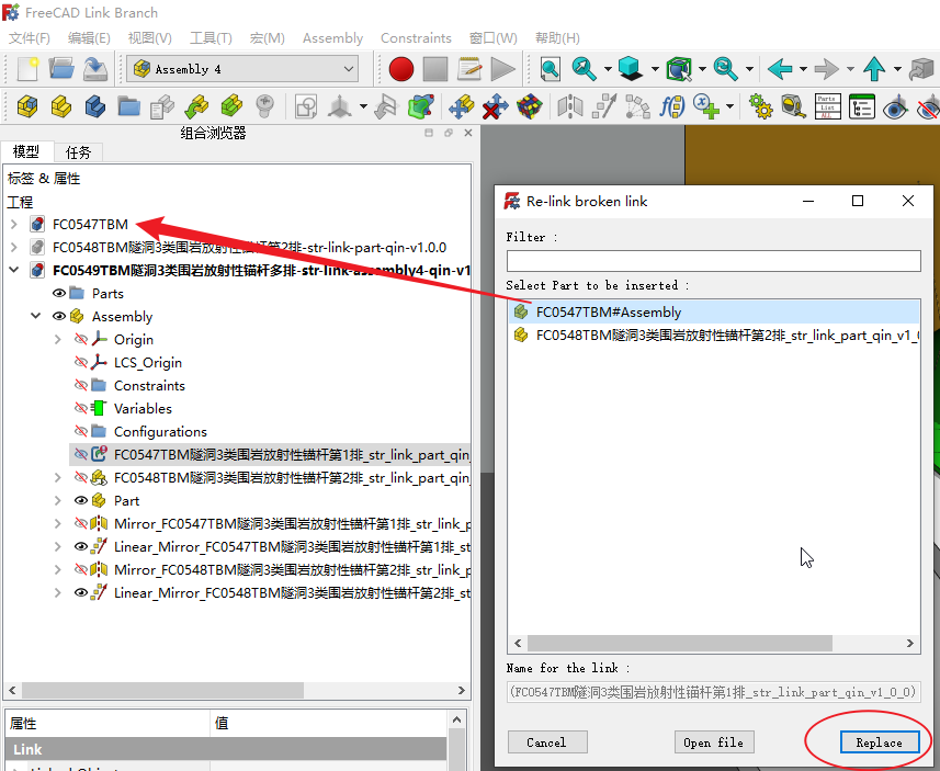 第二步,点击选中报错的子模型链接,然后点击Insert Part按钮,弹窗里看到那个改了名字的子模型,选中,点击右下角的Replace按钮即可。