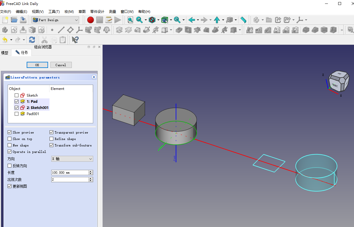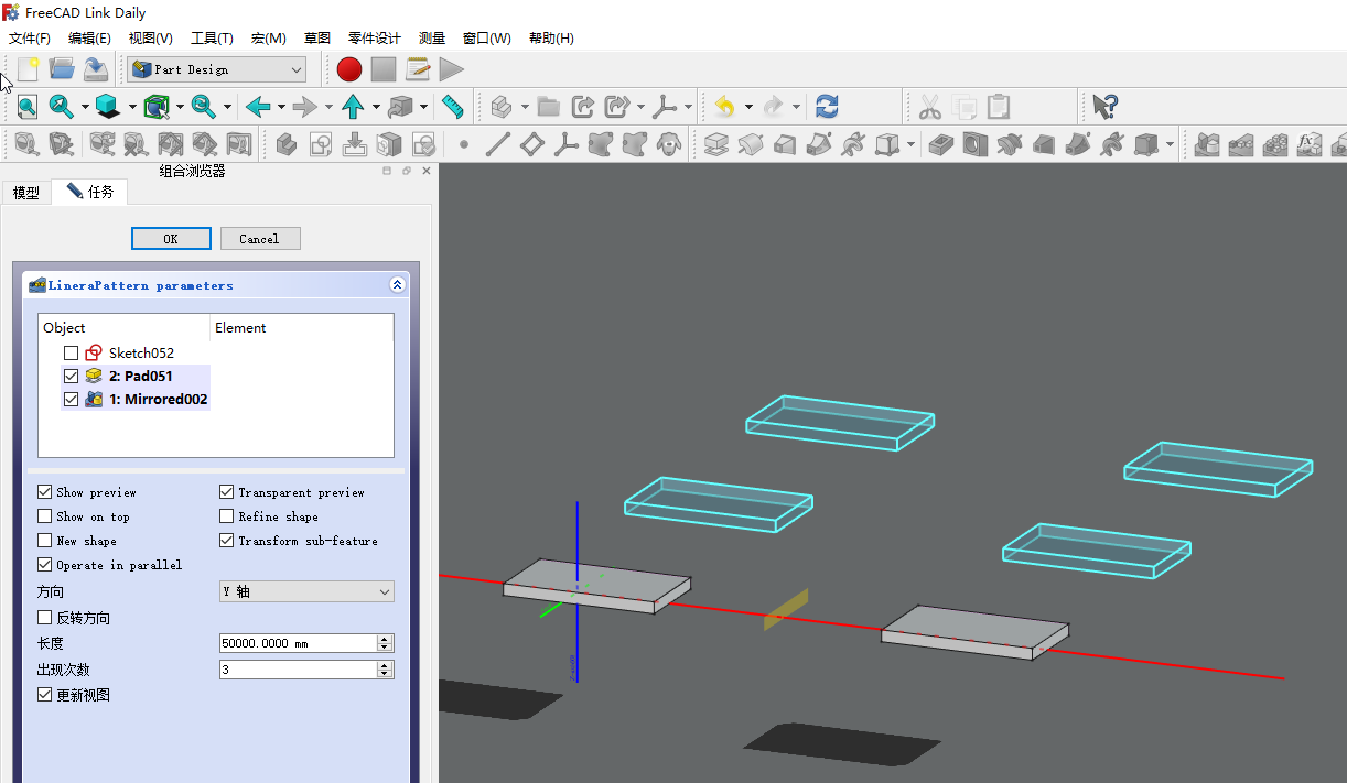 官方新版线性阵列支持任意方向了。link版支持任意方向,但是选的线必须是体上的边线。