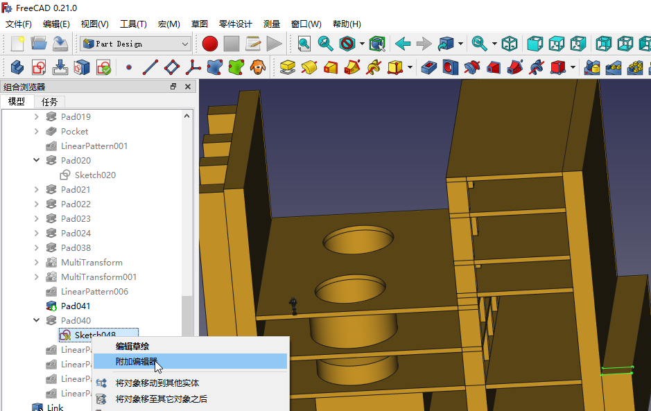 然后做一个pad041,然后鼠标右键pad040里草图——附加编辑器