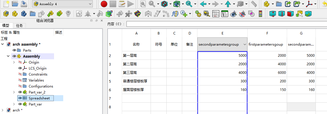 第一步,思考在A4中,需要对变体零件中的哪几个参数要定制,比如楼房,我们需要定制柱高和楼板厚度这2个参数。