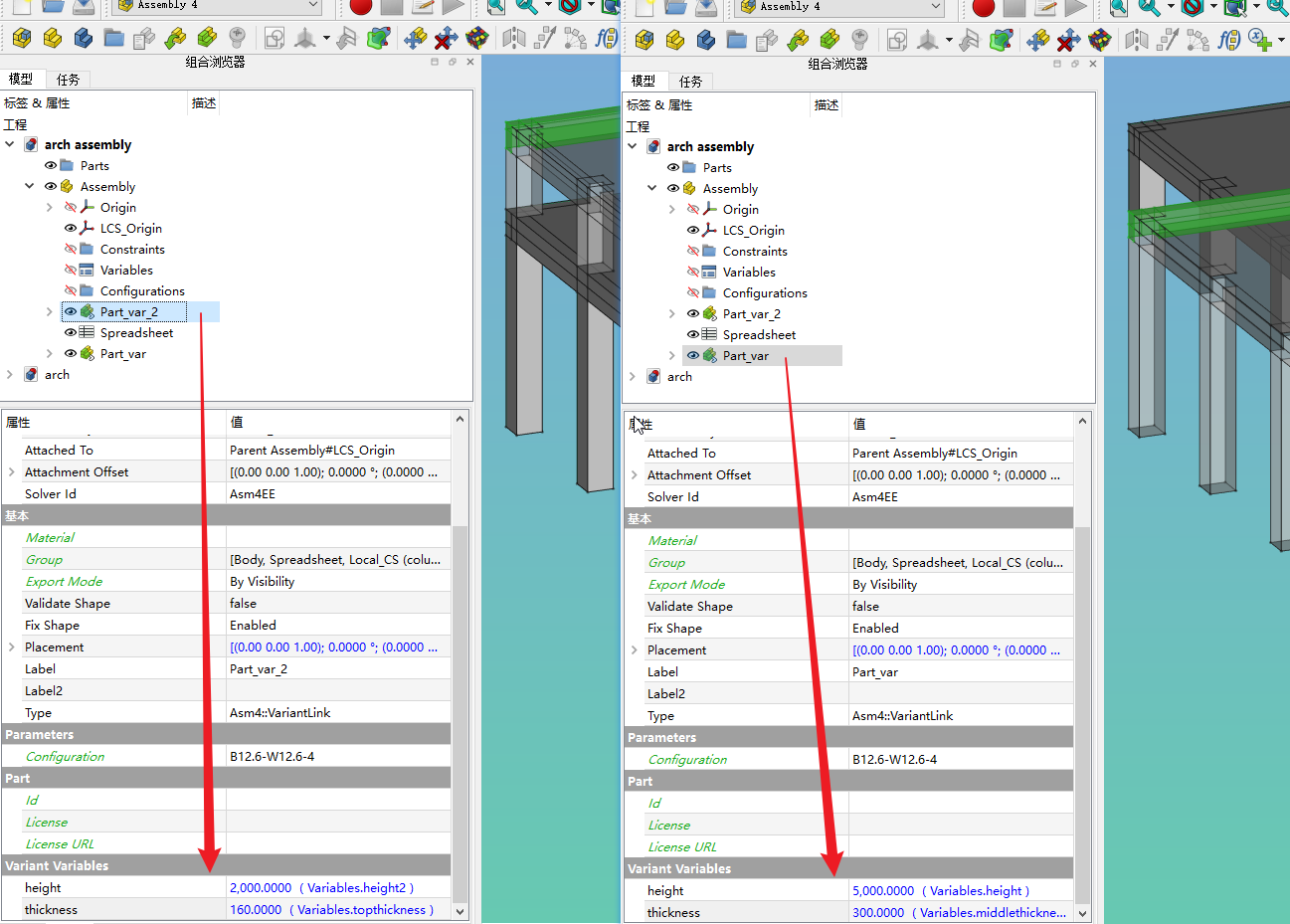 为了使得A4里插入的变体零件,每个都具有自己的参数,需要利用variables来传参。