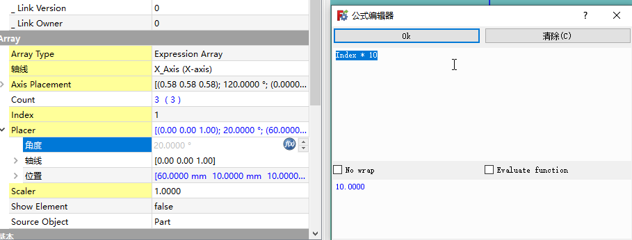 这个阵列功能,数量是任意的,阵列元素的定位和旋转角度,只能是和元素的索引关联,不能是任意的。