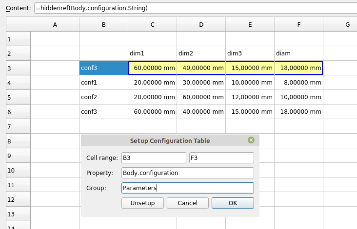https://wiki.freecad.org/Configuration_Tables