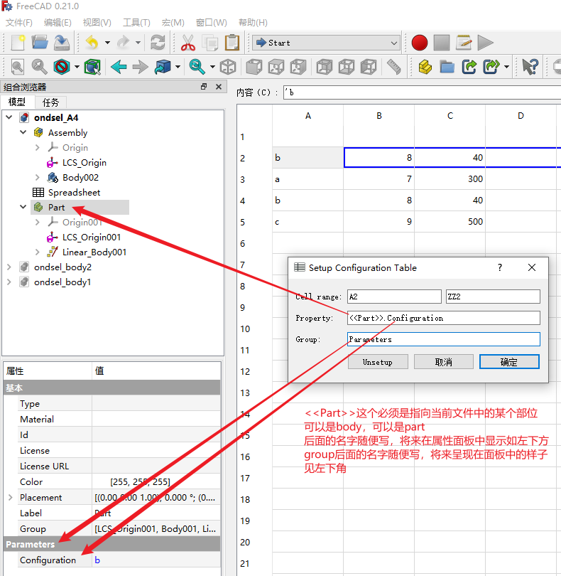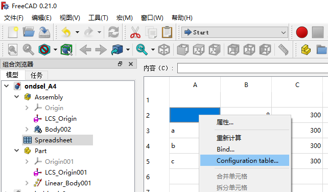 详见:https://wiki.freecad.org/Spreadsheet_Workbench