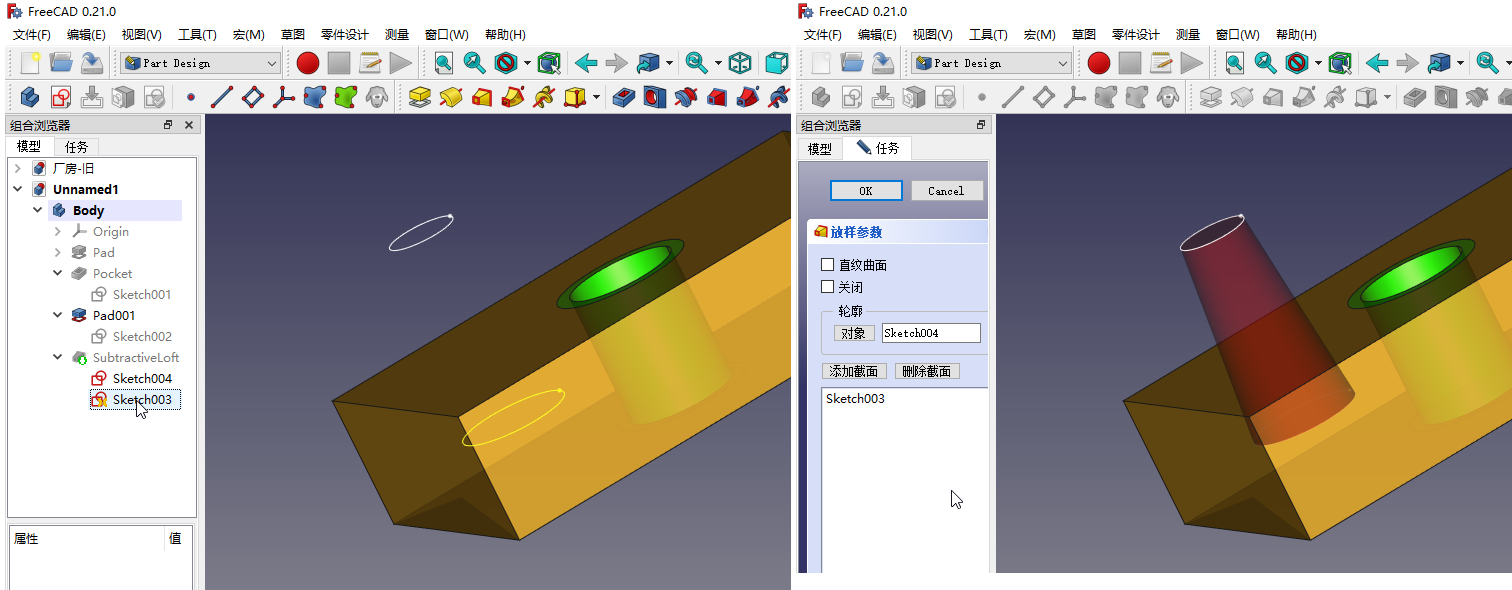 分2次,一次将粉色框中部分,先在草图中建立前后2个外直径圆(一个圆在砼内,一个圆在砼外),做减料放样。