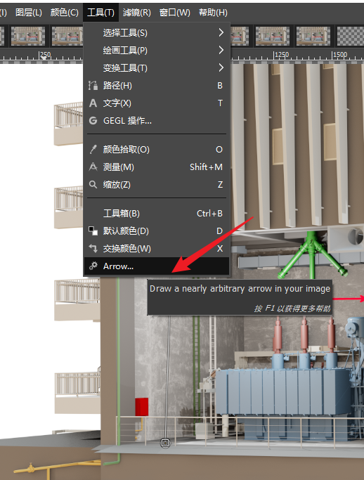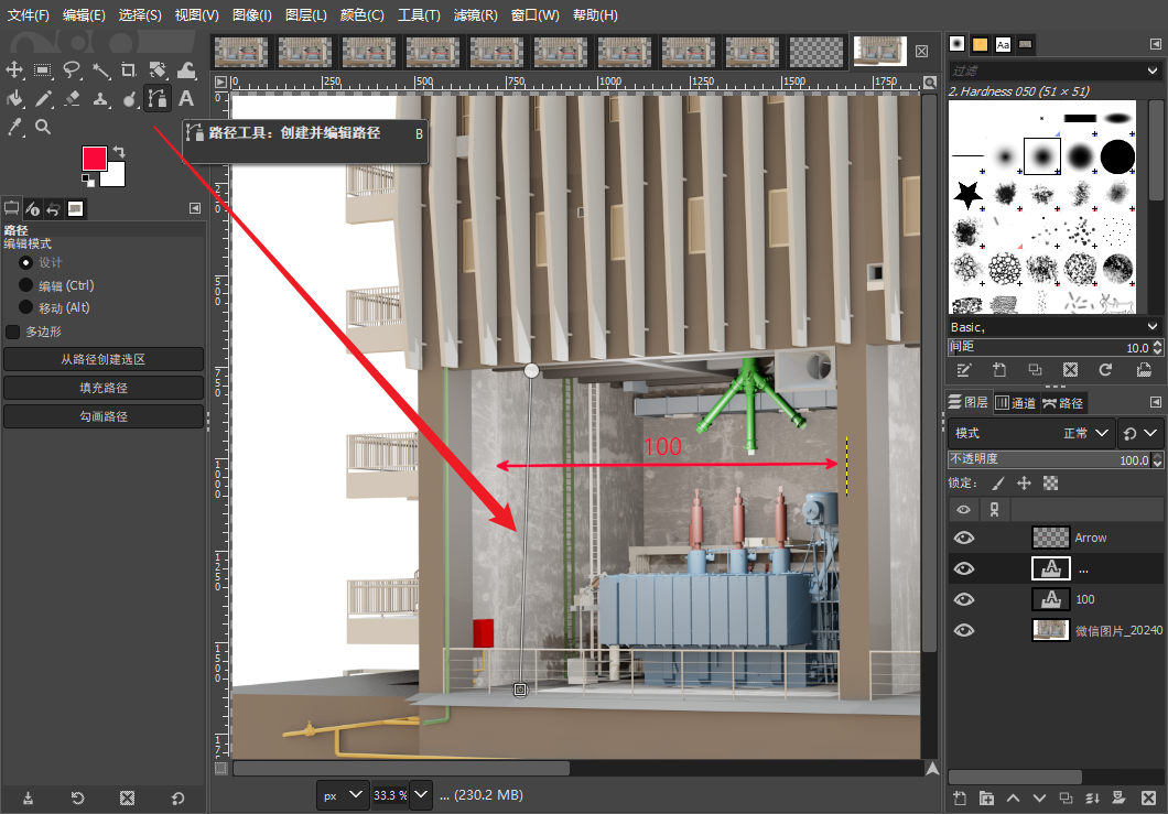 3.重启GIMP,打开一张图片,用路径工具在图片上绘制一个路径