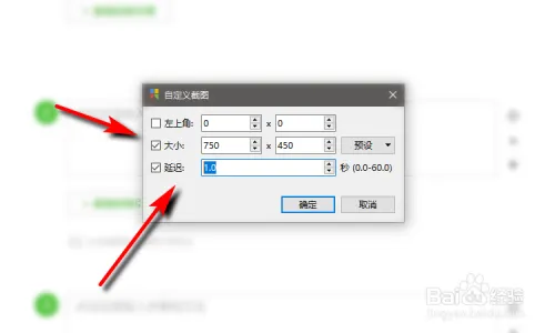 关闭首选项面板。按下刚才记录的“自定义截图”快捷键,弹出对话框,可以调整大小和延时,可以预设保存,例如预设一个419x225的……。