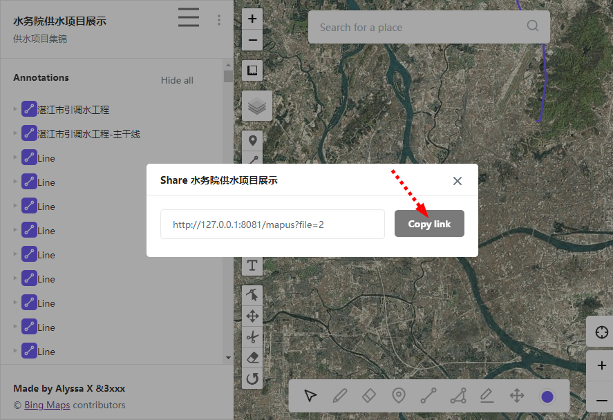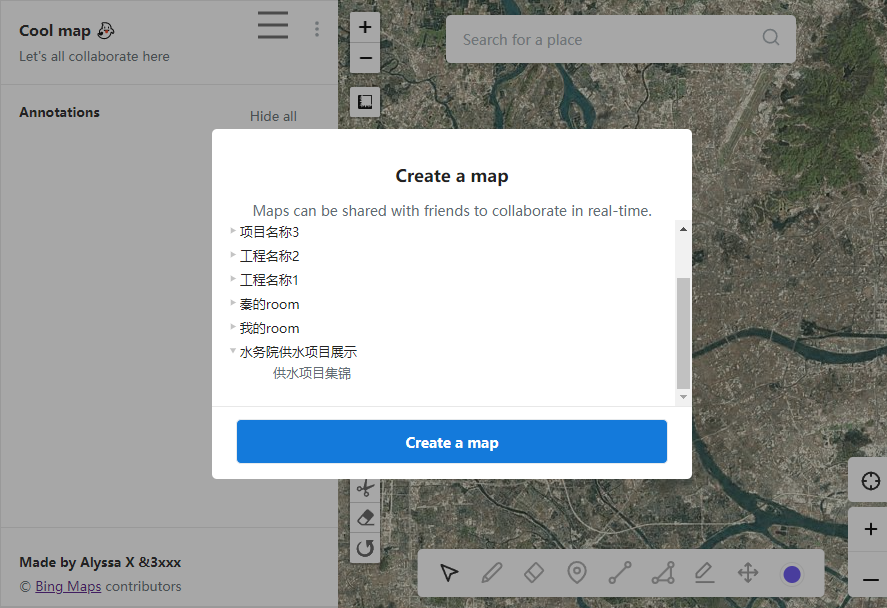 你分享的时候,就是分享这个项目的地图内容,任何人进入这个项目,就会看到这个项目的内容。很像聊天室。聊天室其实就是协作的鼻祖,聊天室就是用websocket协议进行长连接。
