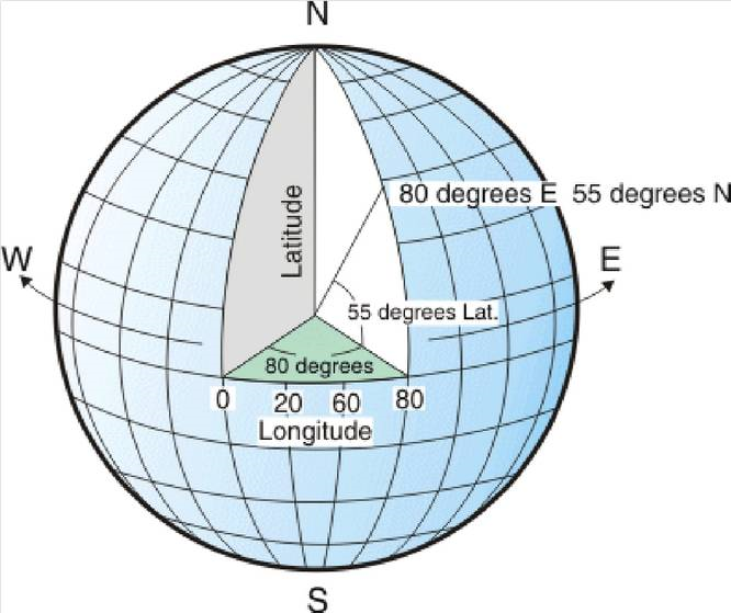 图:地理坐标之经度与纬度图