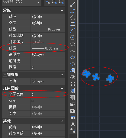 3.线宽:全选——必须设置线宽为0.00 mm,全局宽度为0!!注意,圆以及一些软件生成的图形是无法设置宽度的,所以全选里如果包含了圆和这些图形,则不出现这个全局设置项的。必须关闭它们的图层。