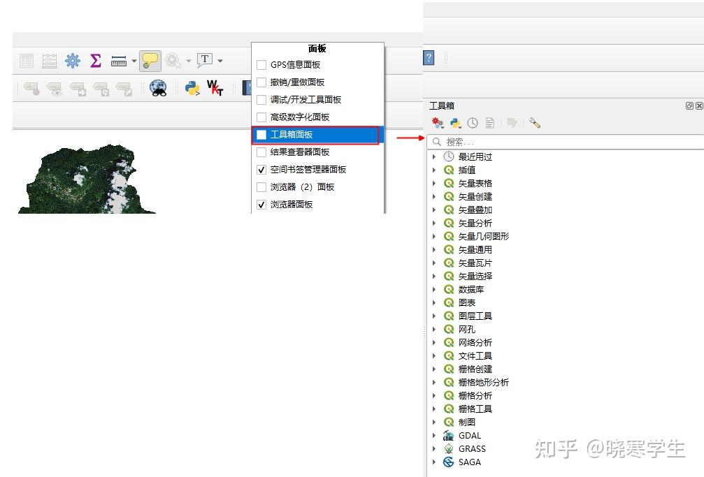 老版的QGIS,面板上右键,勾选”工具箱面板“