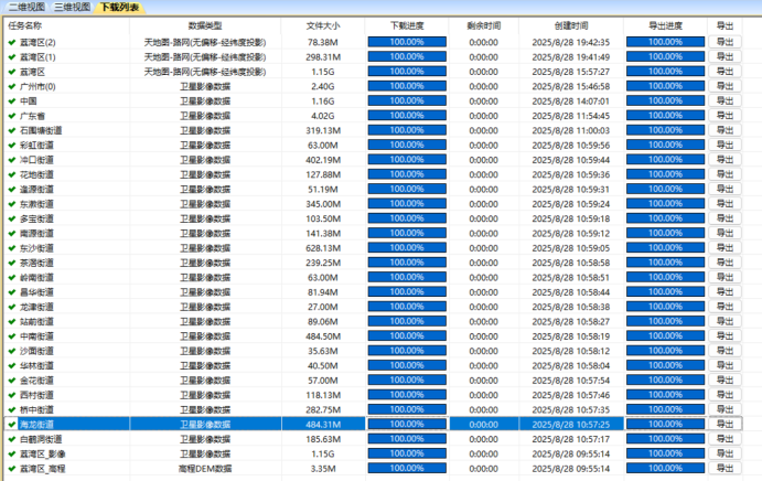 注意:为了范围更广,下载了广州15级,广东13级,中国9级影像数据。注意,更大范围的低级别的数据,最后拷贝到目录里,并且覆盖前面的,因为前面小范围的边界可能不完整。或者简单点的,按精度生成级别范围即可,例如荔湾区,只生成16-19级,不要生成16级以下的,广州生成14-15级,广东生成10-13级,中国生成1-9级瓦片。