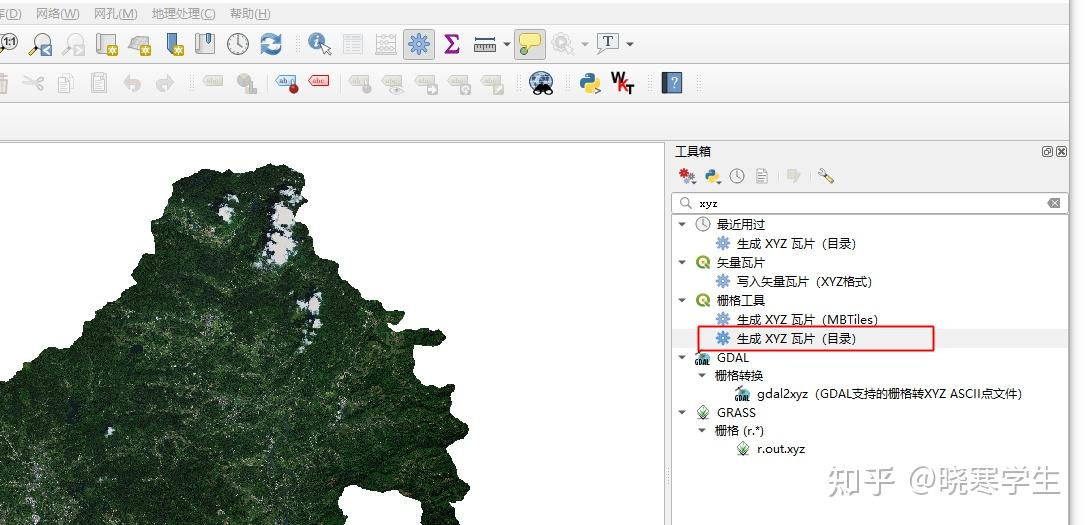 在工具箱中,选择”栅格工具“下的”生成XYZ瓦片(目录)“