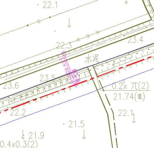 Cad提示标准纵剖面标注的文字大小,默认为5mm。生成的标准纵剖面布置图见下图: