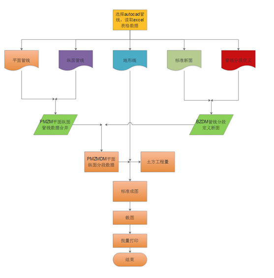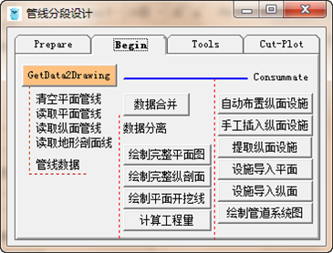 此程序工作的前提条件是布置好了平面管线、切好了地面线、布置好了纵面管线、0桩号0高程点。