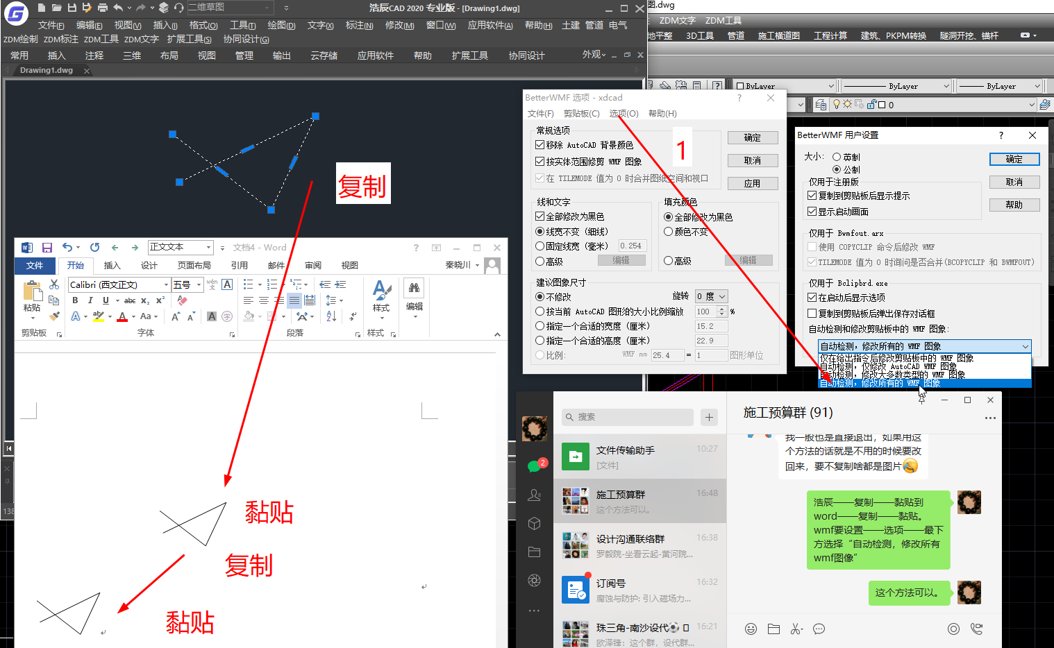 目录 搜索 展开 一、管理1 总述1.1 党建引领1.2 廉政风险1.3 安全生产1.4 警示墙1.5 民法典 劳动法 劳动合同法2 绩效考核和效益工资分配原则3 管理工作要求及分工4 价值评测平台5 成果登记平台6 技术工作能力考核7 标准目录与文件命名8 快速设计方式9 必备规范清单10 软件清单11 校审清单11.1 建筑施工图审查要点12 例会和总结13 演讲与(新人)培训13.1 项目负责人培训★14 失误案例分析和实战经验14.1 引调水14.2 抽水蓄能14.3 其他14.4 钻爆隧洞、盾构隧洞、TBM隧洞14.5 总图的重要性14.6 优秀解决方案14.7 案例提醒时间轴15 开发制度16 格局18 考勤、加班与请假19 分院宣传制度20 经营案例21 设代管理22 职称评定准备二、设计和BIM1 二维制图规定2 autocad2014卡顿、捕捉、先选择后执行3 浩辰中使用betterBMF4 HydroWS使用5 FreeCAD全参数化三维模型设计6 Word必备技能7 加快电脑破旧硬盘读取速度方法三、业务拓展四、TODO List五、制度编制说明六、意见反馈6.1 AAAAAA6.2 BBBBBB6.3 CCCCCC6.4 DDDDDD6.5 EEEEEE6.6 FFFFFF6.7 GGGGGG6.8 HHHHHH6.9 IIIIII6.10 JJJJJJ6.11 KKKKKK6.12 LLLLLL6.13 MMMMMM6.14 NNNNNN6.15 OOOOOO6.16 PPPPPP七、招聘8 打通工作流程中数据流通的发散思路 暂无相关搜索结果! 阅读次数:2432 本文档使用 MinDoc 发布 3 浩辰中使用betterBMF 浩辰——复制——黏贴到word——复制——黏贴。wmf要设置——选项——最下方选择“自动检测,修改所有wmf图像”作者:秦晓川 创建时间:2022-05-13 16:57最后编辑:秦晓川 更新时间:2025-11-04 11:09 上一篇: 2 autocad2014卡顿、捕捉、先选择后执行下一篇: 4 HydroWS使用 提交评论