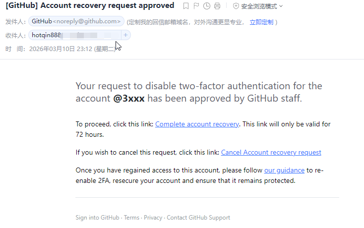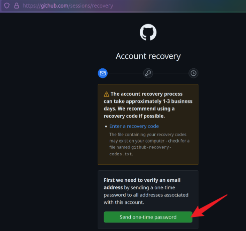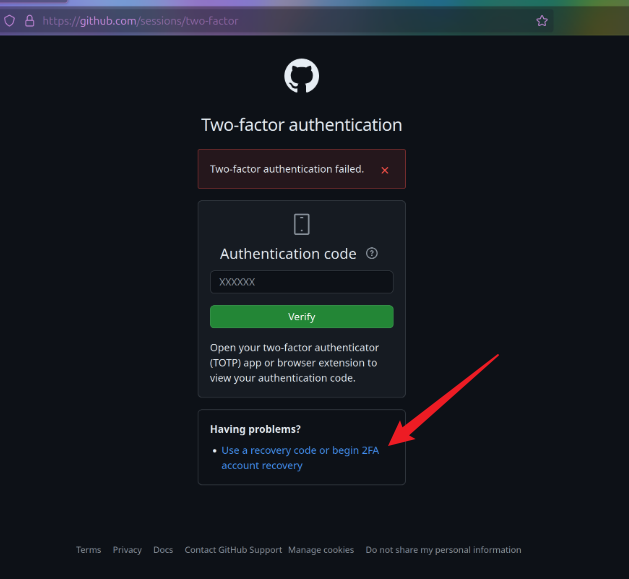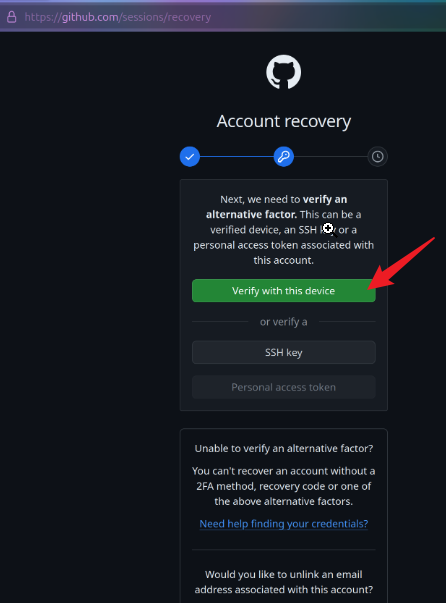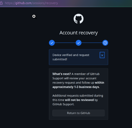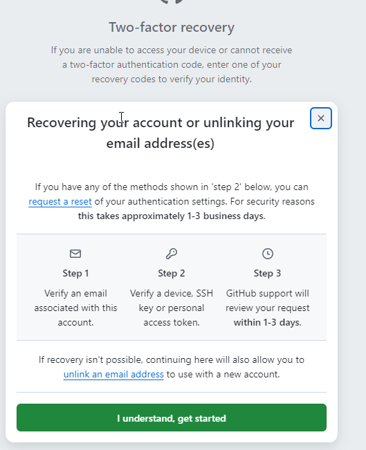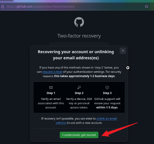 根据上图可知,在没有Recovery code的情况下我们可以通过3个步骤来恢复我们的github*账号