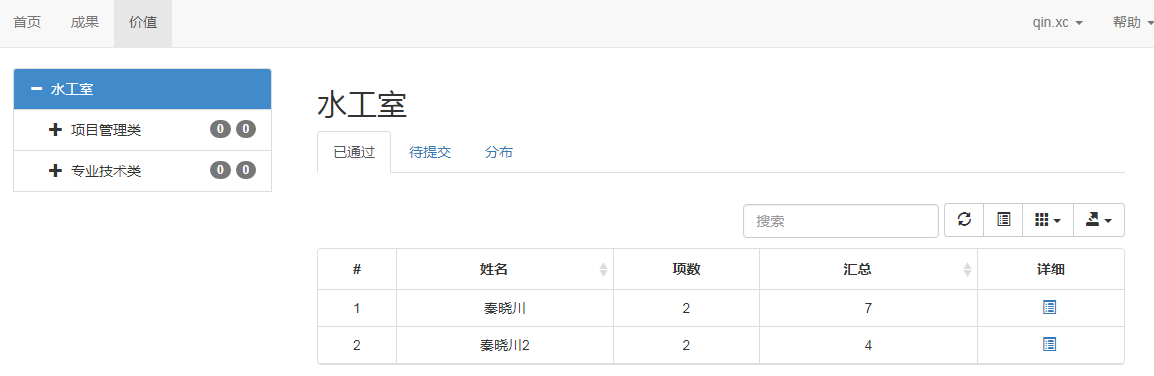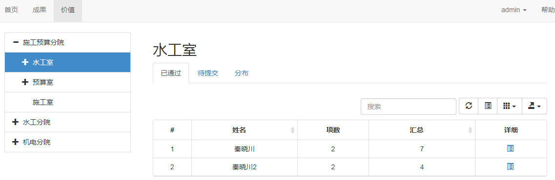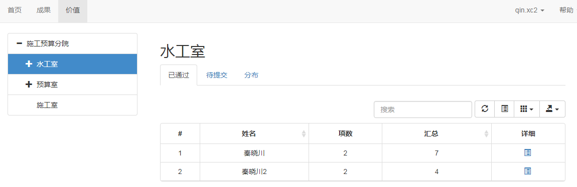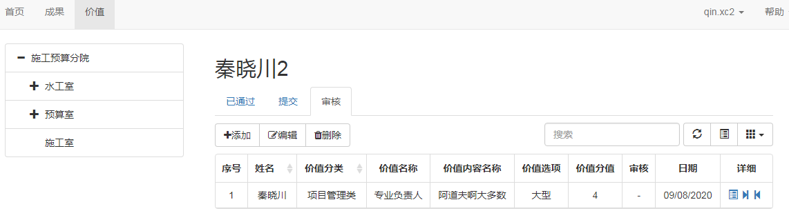 比如秦晓川2是施工预算分院的领导,可以审核自己分院的价值: