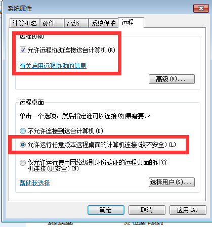 1.右键点击我的电脑——属性——远程设置