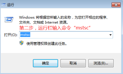 第二步 点击开始菜单(或运行),运行栏输入命令:mstsc