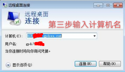 第三步 按提示输入要连接的计算机名(或IP地址)和账户名