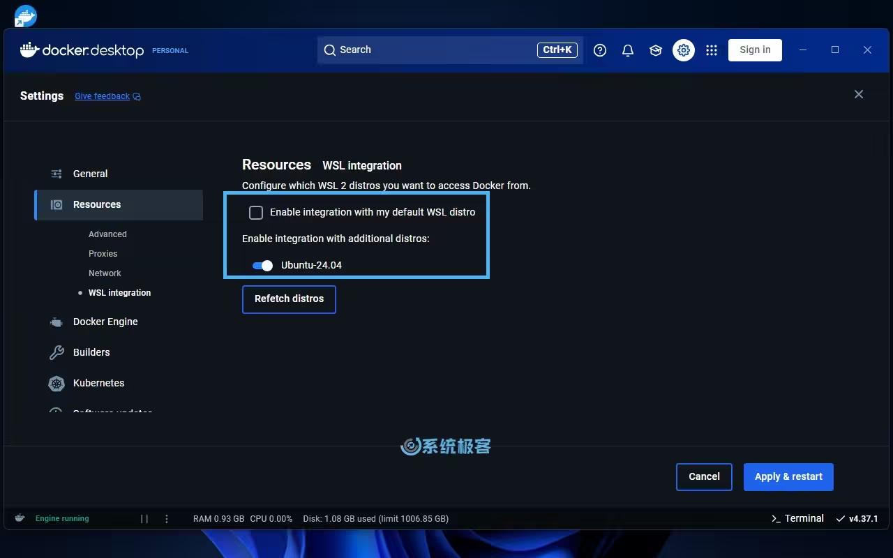 如果你已经在使用某个 WSL 发行版,也可以将它与 Docker 集成: