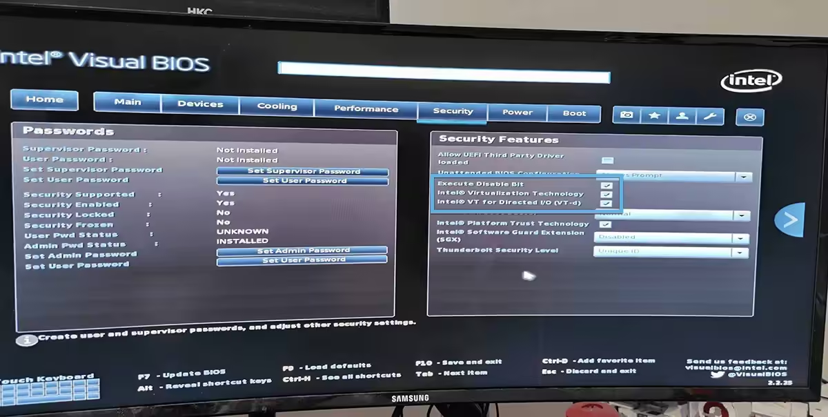 如果是 Intel 处理器,请启用 Intel VT-x