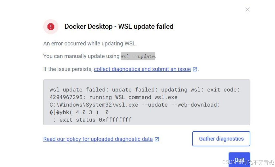 如果输入wsl –update提示的是没有适用的子系统,也可以下载安装包后直接安装后重启电脑再启动docker即可