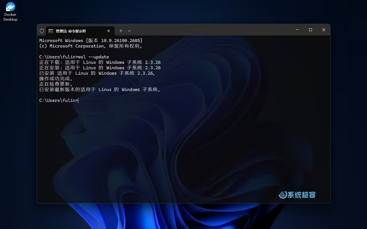 2执行以下命令,先手动更新一下 WSL 版本:wsl --update