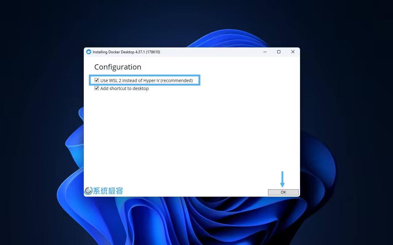 3根据你的需求,勾选或取消「Use WSL 2 instead of Hyper-V (recommended)」选项: