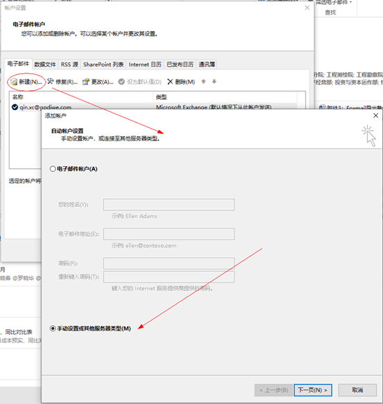 4 新建一个账户,选择手动设置……
