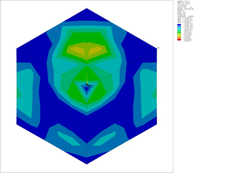 plnsol,epto,eqv,0,1 !梯度线图显示节点解 Total mechanical equivalent strain;EQV,INT:等效应力