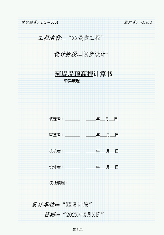 3 模板里要有 0.封面、目录;1.说明;2.计算 等完善的结构
